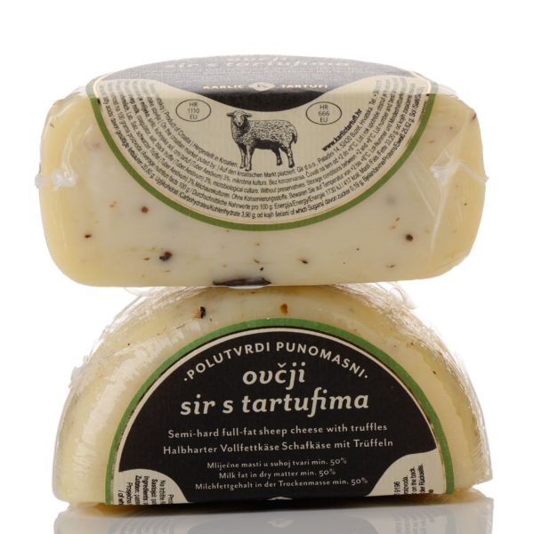 Polutvrdi ovčji sir s rezanim crnim tartufima. Jedinstvenog je i posebnog finog okusa, spravljen po posebnoj recepturi. Poslužiti ga možete kao hladno predjelo uz istarski pršut, rastopljenog na palenti ili za pripremu fritaje s tartufima. Za mnoge je sladokusce upravo sir najdraža delicija, zato se njime počastite i uživajte, ili pak poklonite dragoj osobi.